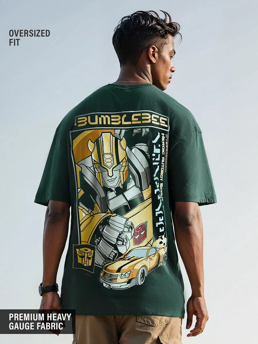 Crafted with premium heavy gauge fabric, this oversized t-shirt brings street style and pop culture together. Featuring a bold Bumblebee print at the back and the Autobot logo on the chest, this drop-shoulder tee is a tribute to the legendary Transformers universe. Perfect for fans and fashion lovers alike who want comfort and bold style in one.