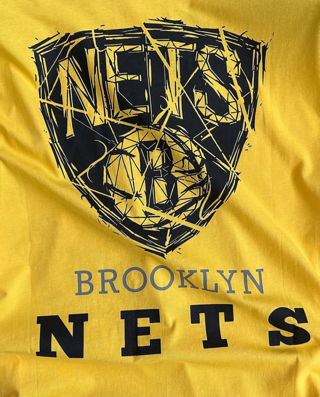 Show your Brooklyn pride with our Brooklyn Nets Distressed Logo Yellow Tee! This vibrant yellow t-shirt features a bold, distressed black Brooklyn Nets shield logo prominently displayed on the chest, giving it an edgy, urban look. Below the main graphic, "BROOKLYN" in subtle grey lettering and "NETS" in a strong black font reinforce your allegiance to the team. Made from comfortable, breathable fabric, this tee is perfect for game days, casual outings, or simply representing your favorite NBA team in style. Its classic fit ensures versatility and comfort for all-day wear.